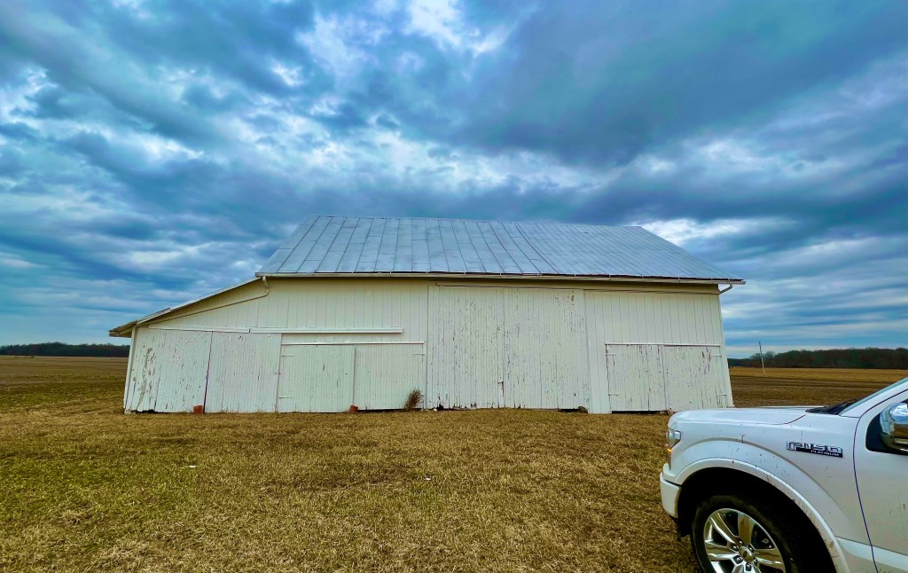 The large barn above can be seen in the distance and just beyond that can be seen the timber framed Liberty Presbyterian Church at the corner of Home Rd. and SR 315. This farm field is now the Trails End development.