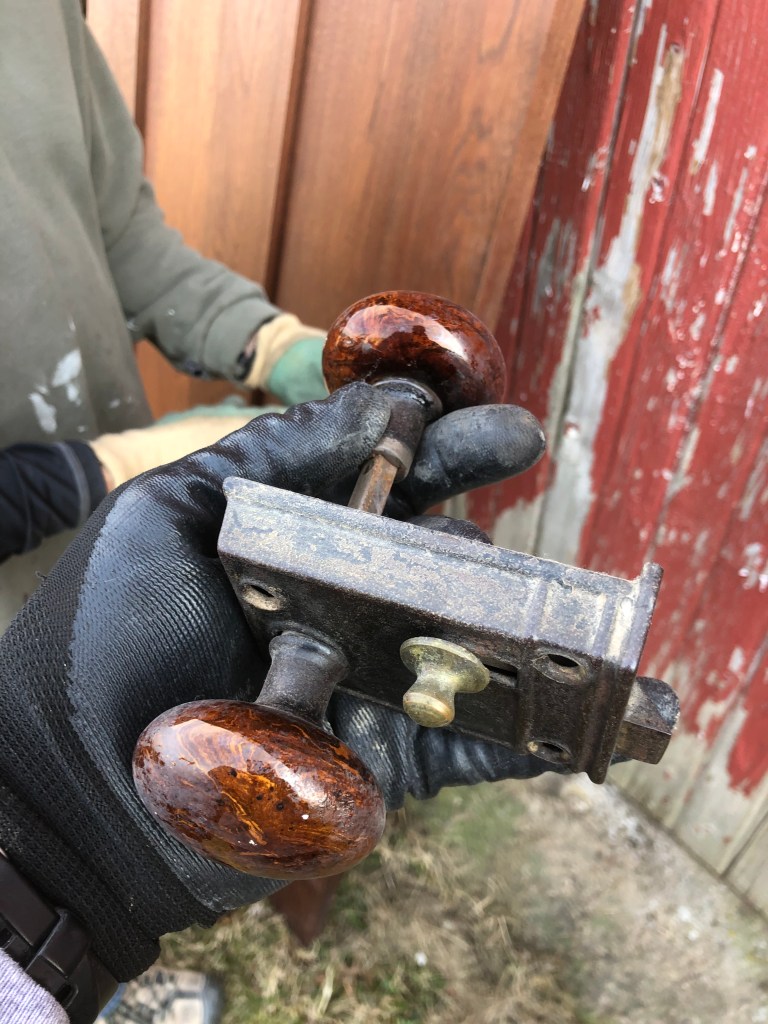 This brick home was slated for demolition and the owners kindly offered us the opportunity to save all of its interior walnut doors and trim knowing that it could be put to good use. Our crew takes a minute for a quick photo op.
