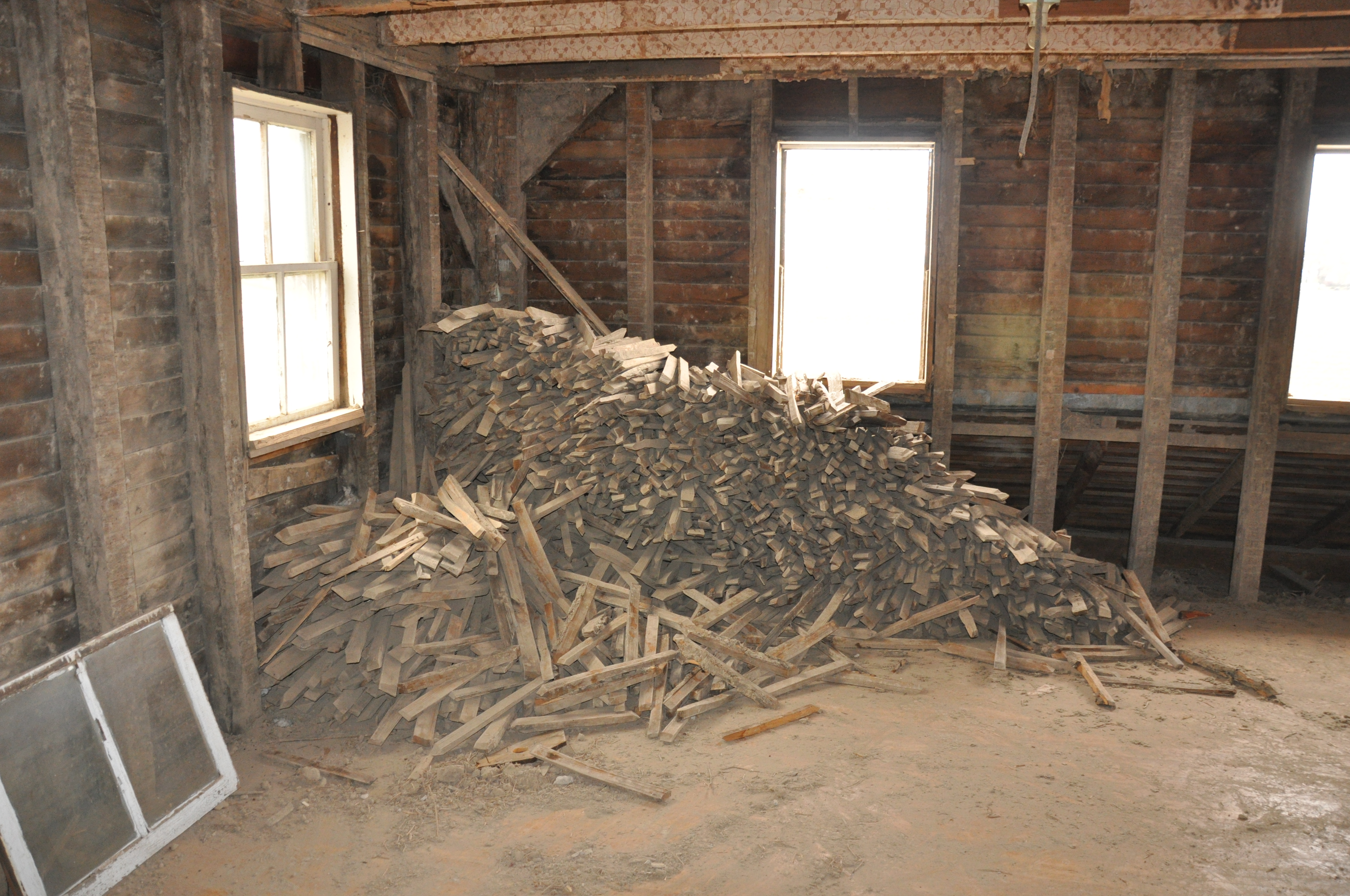 These beautiful hand hewn ceiling joists will be exposed from the first floor kitchen/dining area upon restoration.