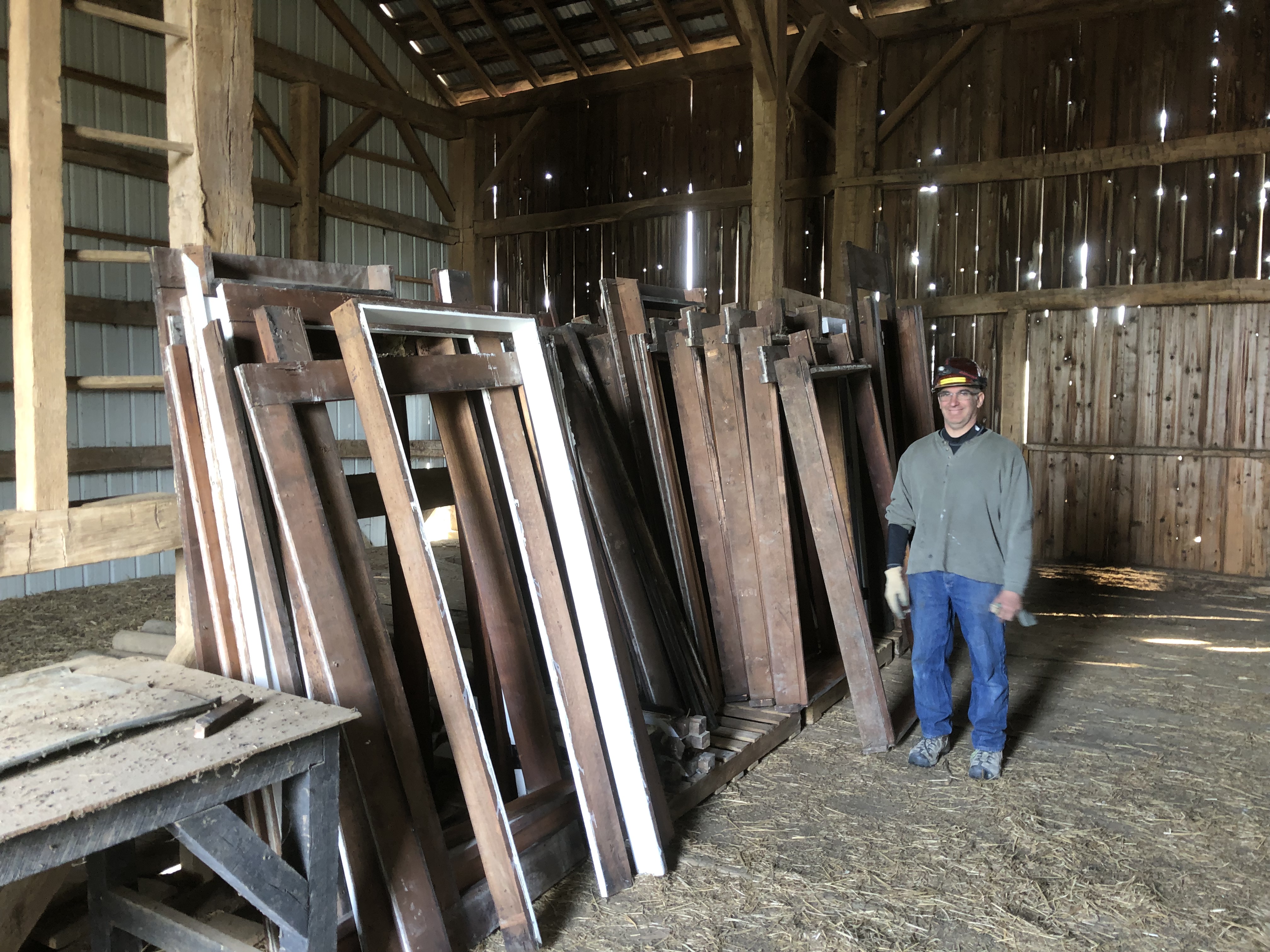 Pictured below is a rare barn from Wayne County, Ohio. Its hand hewn oak post timbers measure 13″x13″ and the 45’x70′ barn is in excellent condition. What makes it truly unique is the discovery of the signature of its builder, seen in the photo. Back in the corner granary, where harvested grains were kept for the animals, written in pencil is “H. M. Longsdorf June the 6, 1857.” After signing the beam, Harmon covered it with boards to protect it. He must have wondered who would see his signature if ever the day came that the barn would be dismantled and hopefully saved. It is currently in storage awaiting a new home.
